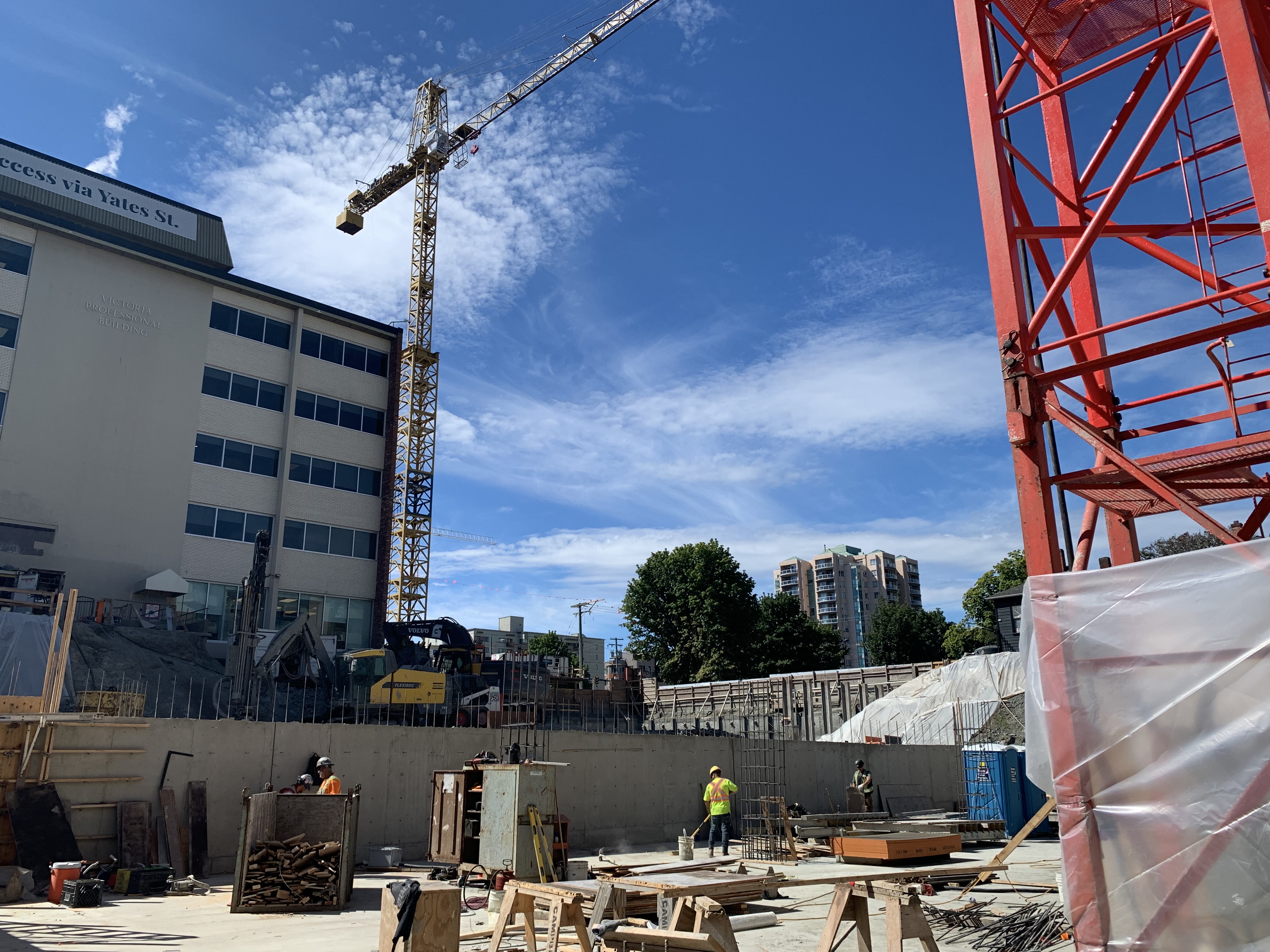 At Haven we saw the installation of the crane in August! This installation has facilitated construction of the building core, elevator pit and foundation slab for the lower parking level and has made way for the crew to start building upwards. Next on the docket is pouring of the concrete slab that will support the first level of parking of the below grade parkade. Over the coming months, the team will continue to push towards making its way to ground level and beyond.